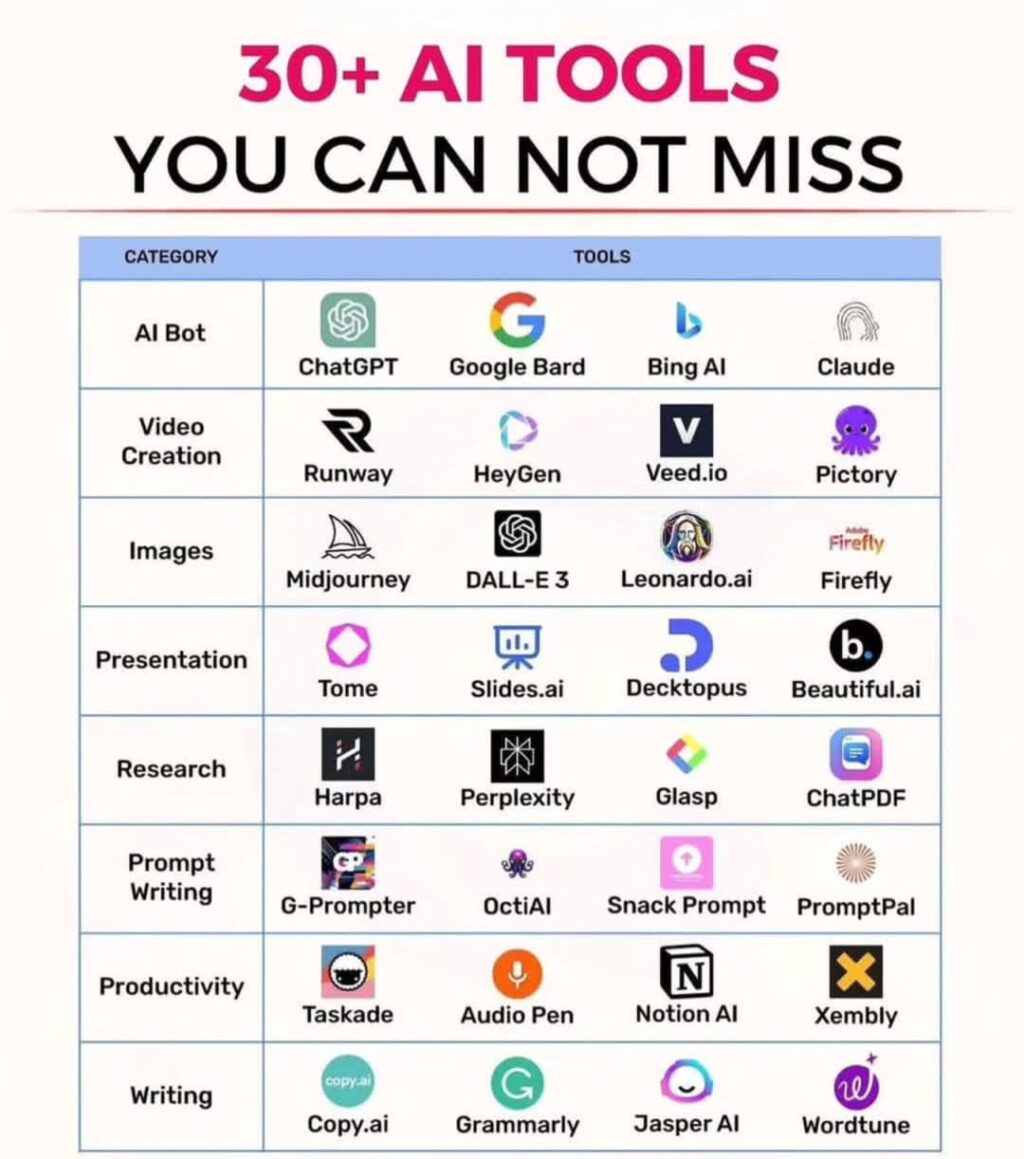 From chatting and research to creating videos, images, presentations, and even improving productivity & writing β this list has it all! π‘β¨